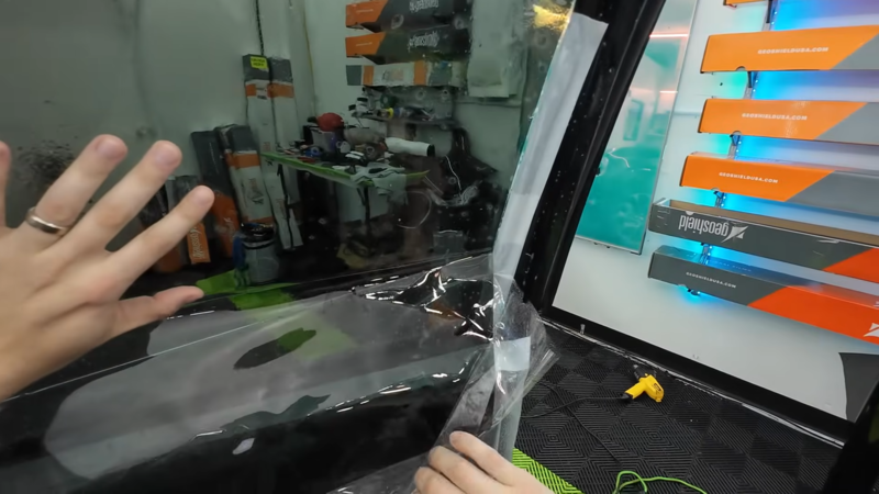 • Dán Phim Và Loại Bỏ Bọt Khí: Kỹ thuật viên dùng dụng cụ chuyên dụng để dán đều, tránh bọt khí.