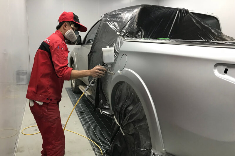 Xe sẽ được xử lý bề mặt, mài nhám và che chắn cẩn thận. Quy trình sơn xe ô tô chuẩn hãng tại Huế được thực hiện trong buồng sơn tiêu chuẩn. Mỗi lớp sơn đều được phun tỉ mỉ, sấy khô đúng kỹ thuật.